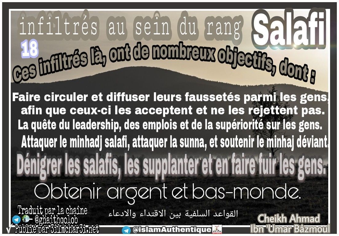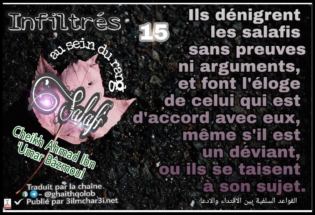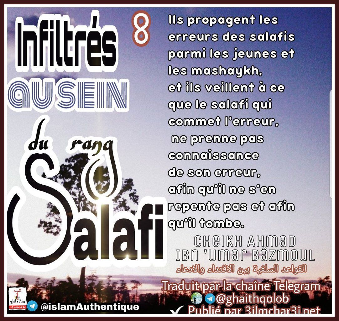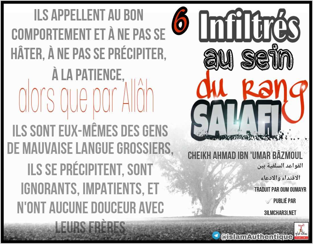 Il y a que ceux qui se mettent en avant, la majorité d'entre eux sont des résidus de groupes, des miettes, ils se sont emparés de la prédication salafi, et voilà qu'ils se sont mis à supplanter ses Hommes dignes de loyauté.